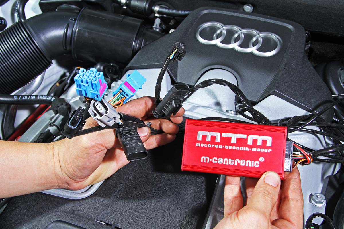 擅長針對德國VW、Audi車款進行動力提昇改裝的德國MTM,對於ECU程式的改寫工程,特別推出名為M-Cantronic的外掛電腦,這部電腦除了可透過手提電腦進行內部程式調校外,安裝時也相當簡單,完全不需剪線,只要將專用轉接插頭,與原廠的高壓泵浦、歧管壓力感知器與ECU部分線組插頭對插,就能進行ECU程式的修改,因此增壓值也是利用MTM電腦進行改寫。