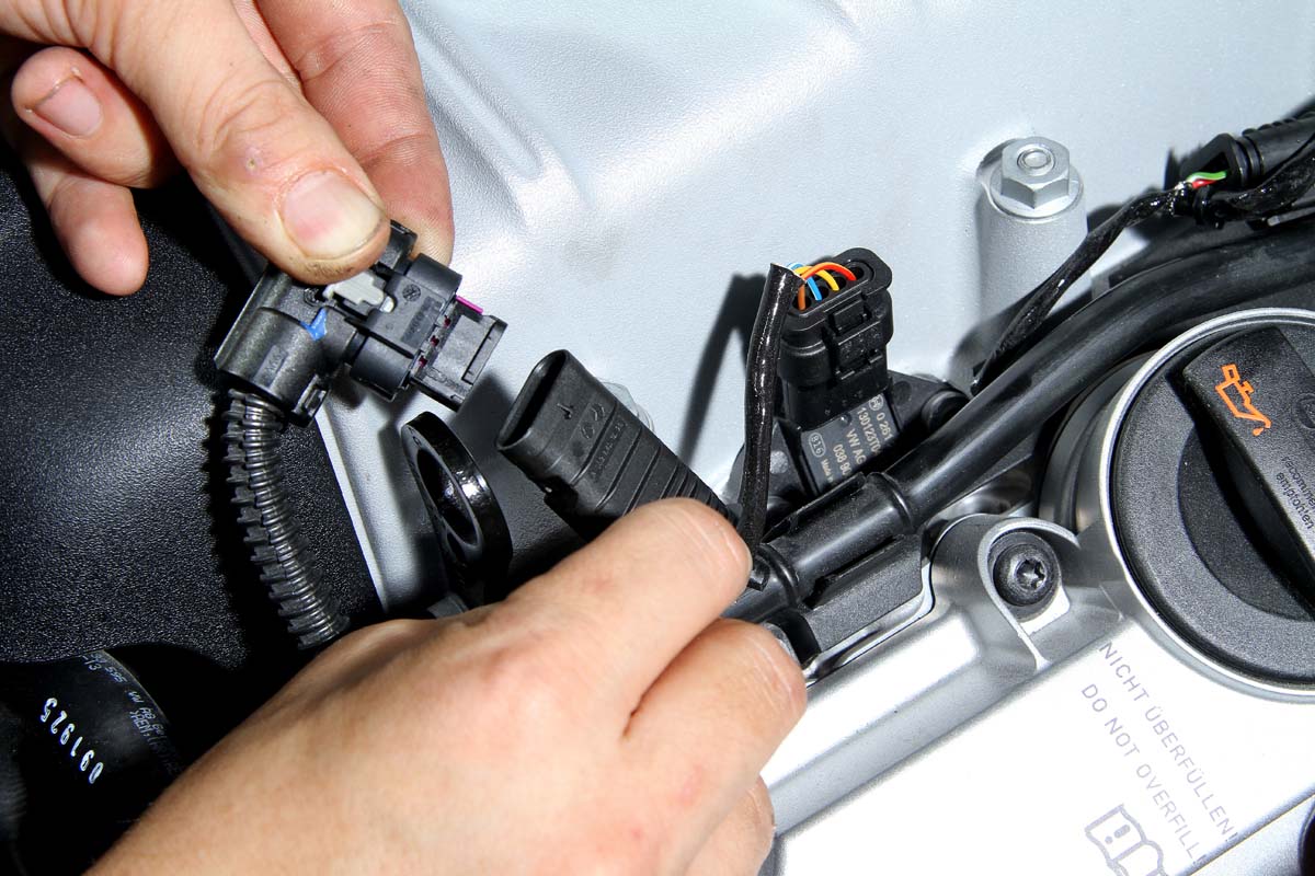 | 這套由MTM推出的M-Cantronic外掛電腦,安裝不需剪線,只要將專用轉接插頭,與S5原廠的高壓泵浦、兩顆歧管壓力感知器與ECU部分線組插頭對插,就能進行ECU程式的修改,同時還能解開原廠限速。 |