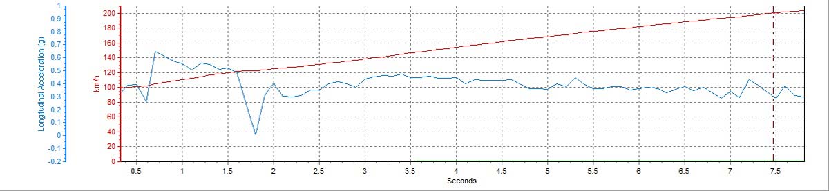 | 100-150km/h:3.74秒 100-200km/h:7.37秒 花費距離:301.38公尺 |
