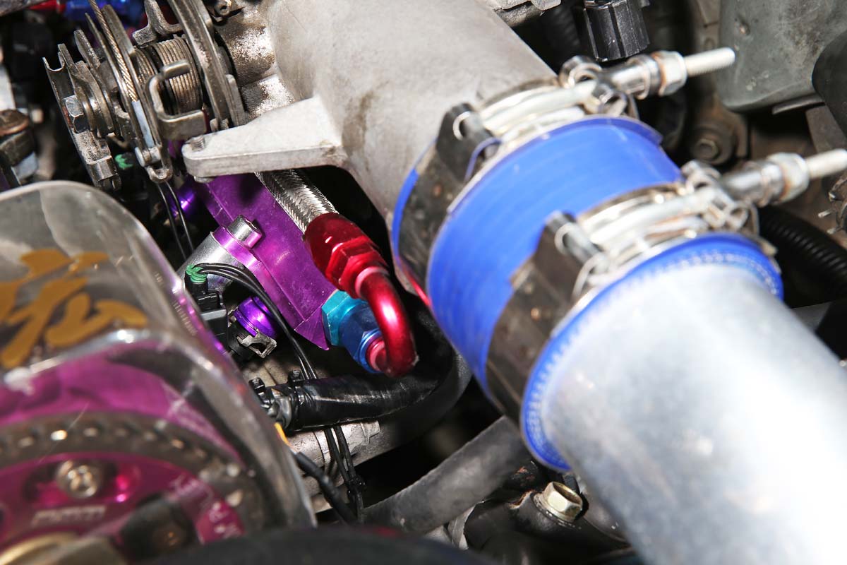 | 供油系統更是相當重要的環節,除了噴油嘴與調壓閥外,怪物等級的車輛通常都會換上「加大油軌」這項部品,主要目的就是提升燃料容量,才有辦法對應大號噴油嘴瞬間需要的噴射效率。 |