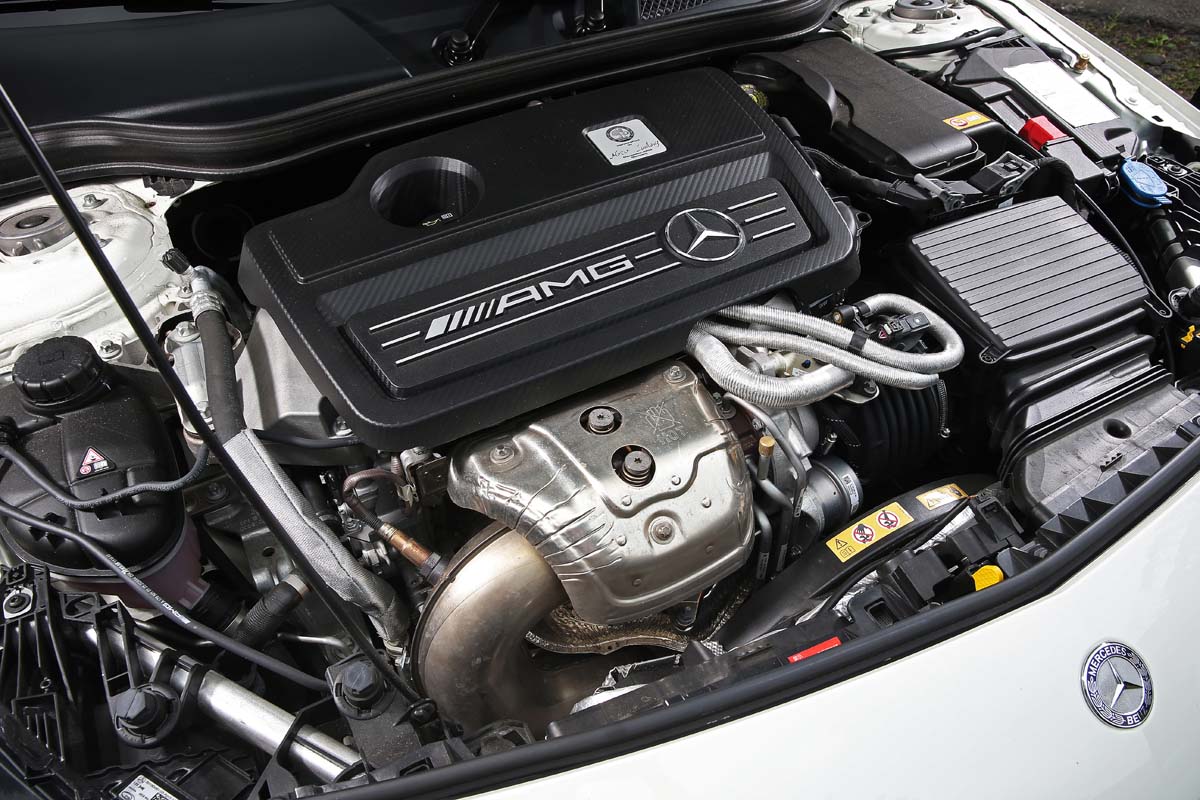 在過去Mercedes-AMG所使用的強制進氣多半是較溫和的機械增壓為主,不過近幾年來缸內直噴科技的大幅躍進,小排氣量搭配上出力更狂暴的渦輪增壓也逐漸成為主流,這也徹底的打臉了5、6年級生對於排氣量=動力的既有概念,尤其是Mercedes-AMG A45一推出的時候,2.0升渦輪增壓卻能榨出360hp的最大出力根本是亂搞,而小改款的M133引擎又再度向上壓榨,381hp/48.46kgm致命級的表現看似相當棘手,不過在山路上的表現卻是令人吮指回味想一嚐再嚐。