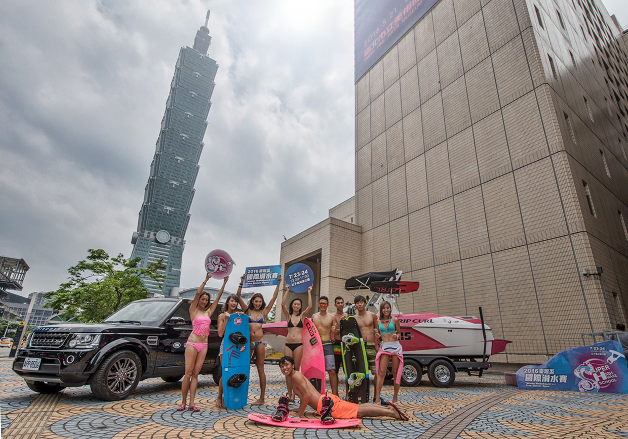 體現個人風格的New Range Rover Evoque、七人座休旅旗艦Discovery Graphite特仕版、同級最大空間變化的Discovery Sport及美國知名滑水遊艇品牌AXIS粉紅極限賽艇,與2016臺灣盃國際滑水賽國家代表隊一同現身信義區,為7月23日至24日在社子島河濱公園登場之大賽強力造勢。