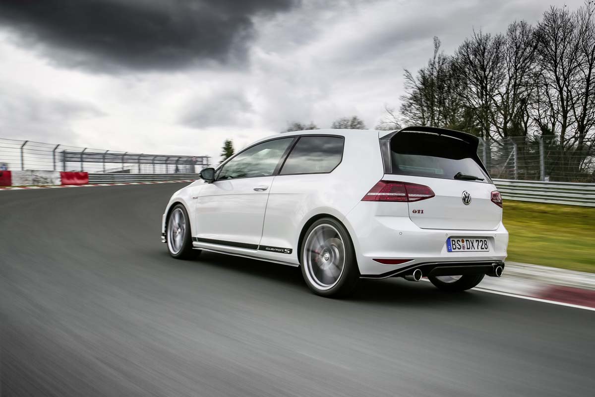 | 由德國車手Benny Leuchter所駕駛的Golf GTI Clubsport S,僅花了7分49秒21的時間便疾速繞行紐伯林北賽道一圈,並且打破由Honda Civic Type R才剛創下的前驅車最速紀錄。 |