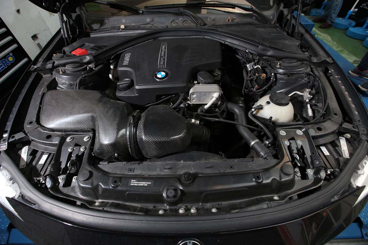 渦輪引擎部分,則是以2014年的BMW 328i F30為測試車輛,這部車原廠壓縮比達11.0:1,加上渦輪增壓系統的強制進氣後,實際引擎壓縮比早已超過該數值許多,同樣可用來測試辛烷值高低對引擎性能的影響。此外,不同煉油方式製造出來的中油/台塑油品,甚至是強調競技用途是VP賽車汽油,在NA/Turbo引擎上是否有不同的性能表現,也是大家都想知道的測試重點,因此加入渦輪車來進行測試,變成了不可或缺的條件。值得一提,這部BMW 328i的動力系統,已加裝Shadow i-Boost外掛電腦,希望藉由更高的增壓值測試環境(1.0bar提昇到1.3bar) ,來嚴苛測試汽油的極限表現。