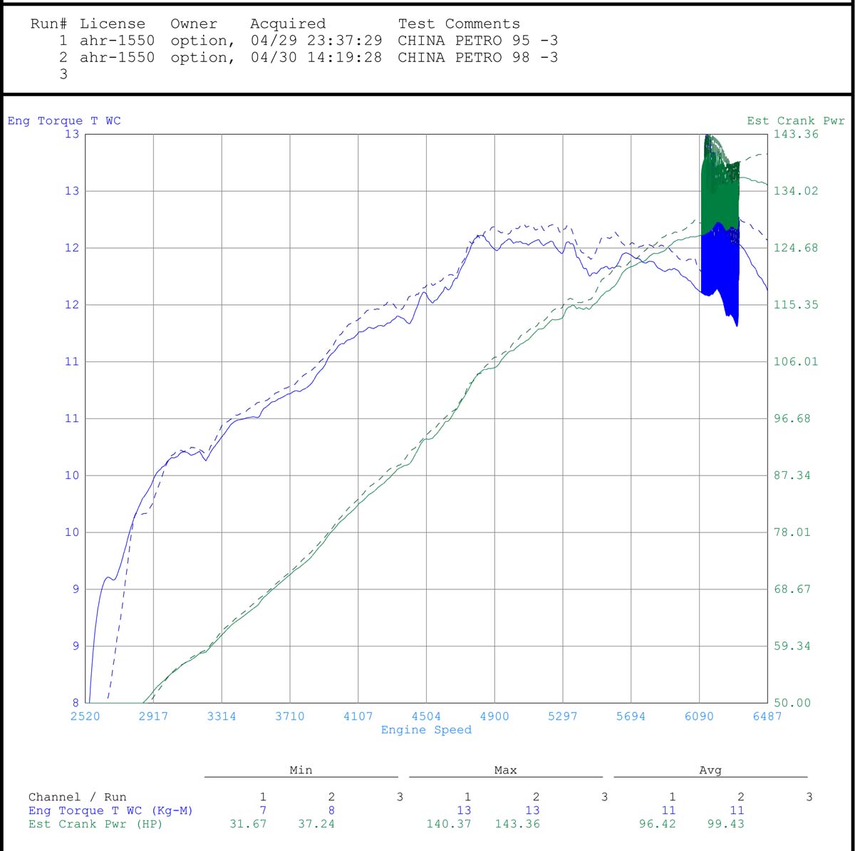 汽油馬力測試-中油95 vs.中油98自然進氣組(Part.3)