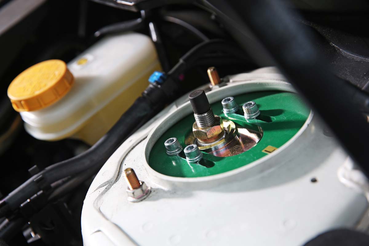 | 避震器設定為硬派式樣,Tein Street Flex全段高低可調式樣讓車主在設定上多了許多空間,並且不壓縮到彈簧還可保持最基本的乘坐舒適度。 |