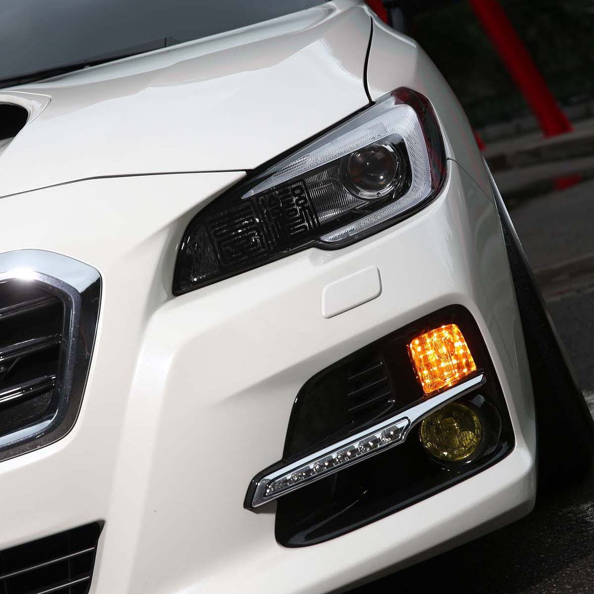 不過為了市區走行的便利性,車高部分並沒有辦法設定到太過一拜,以現在葉子板剛好切齊輪胎的高度來說,對於AWD車來說已經是相當的極限了。除此之外這輛車也換上了藤壺專用尾段排氣管,幾乎原廠般的排氣聲浪比較像是有點裝飾車尾般的存在感,而筆者最愛這輛車的地方其實就是黃色貼膜的霧燈及方向燈,搭配上白色的車身滿滿的大和風味,也相當適合檸檬這種日式風格濃厚的五門運動旅行車。