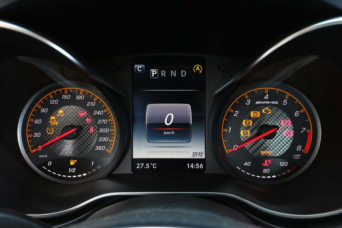 雖然兩張座椅非常硬派,但車艙裡的整體陳設還是有M.Benz的質感,但為了營造更好的戰鬥氣氛,車艙裡用了不少碳纖維飾板以及Dianmica織布,搭配貼地的坐姿與視野,造出了100%的氣氛,但GT S其實無須在氣氛上多作著墨,對於駕駛者來說,整體的駕駛感與反應都是純正跑車才有的水準,太多的矯飾都是多餘。