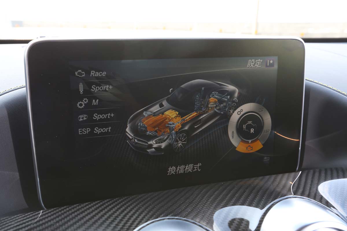 駕御如此的蠻力不只需要技巧,也需要電子系統的輔助,車上的AMG Dynamic Select就是為GT S量身訂做的裝備,這個裝置預設了C舒適、S運動、S+加強運動、Race賽車以及I自訂等多種模式,最極端的Race模式只適合在賽道上使用,在一般道路上如果要稍微提高車速,端看駕駛者口味多重,可以選擇S或是S+,我們一天的試駕之後,覺得S+比較適合愛享受速度的駕駛者,S模式還是有點太溫和,至於C模式呢?如果想把GT S當成S-Class來開的話,或許可以考慮一下。