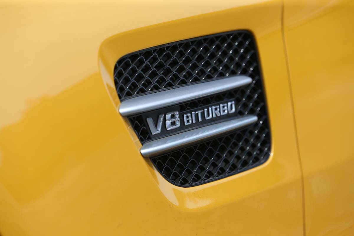 | 側邊散熱口的字樣提醒旁人別跟雙渦輪增壓V8引擎過不去。 |