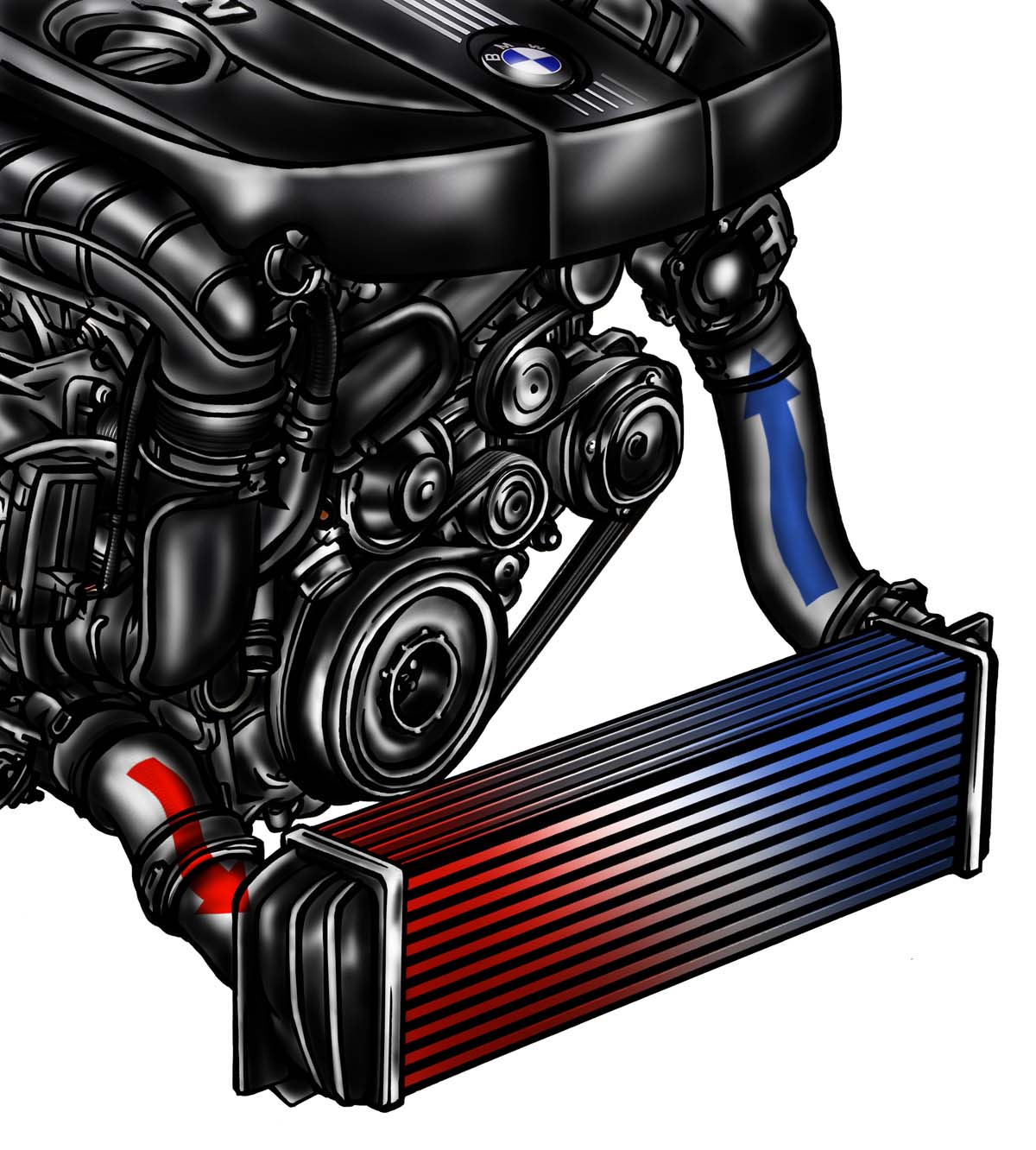 | 被壓縮到一定空間的空氣,因為被大量擠壓導致分子密度過高,分子間不斷的推擠與摩擦下,此時就會產生高溫使得內部的含氧量下降,如果不進行冷卻就直接導入燃燒室內,除了容易產生爆震外,含氧量低相對的燃燒效率就不佳,因此無論是水冷還是氣冷「中冷器」都是渦輪增壓系統中不可或缺的一環。 |