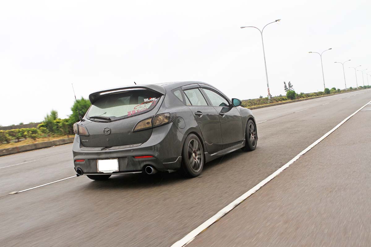 發動引擎上路試駕,筆者發現這部Mazda 3的油門真的很輕,起步時油門大約踩1/4的深度,便可感受到明顯的吸氣聲與貼背感受,加速表現完全不拖泥帶水,更重要的是車主表示,從一年多以前改裝渦輪到現在,引擎燈都不曾亮過,甚至高速巡航的油耗表現還更省,一公升汽油可多跑1-1.5公里。