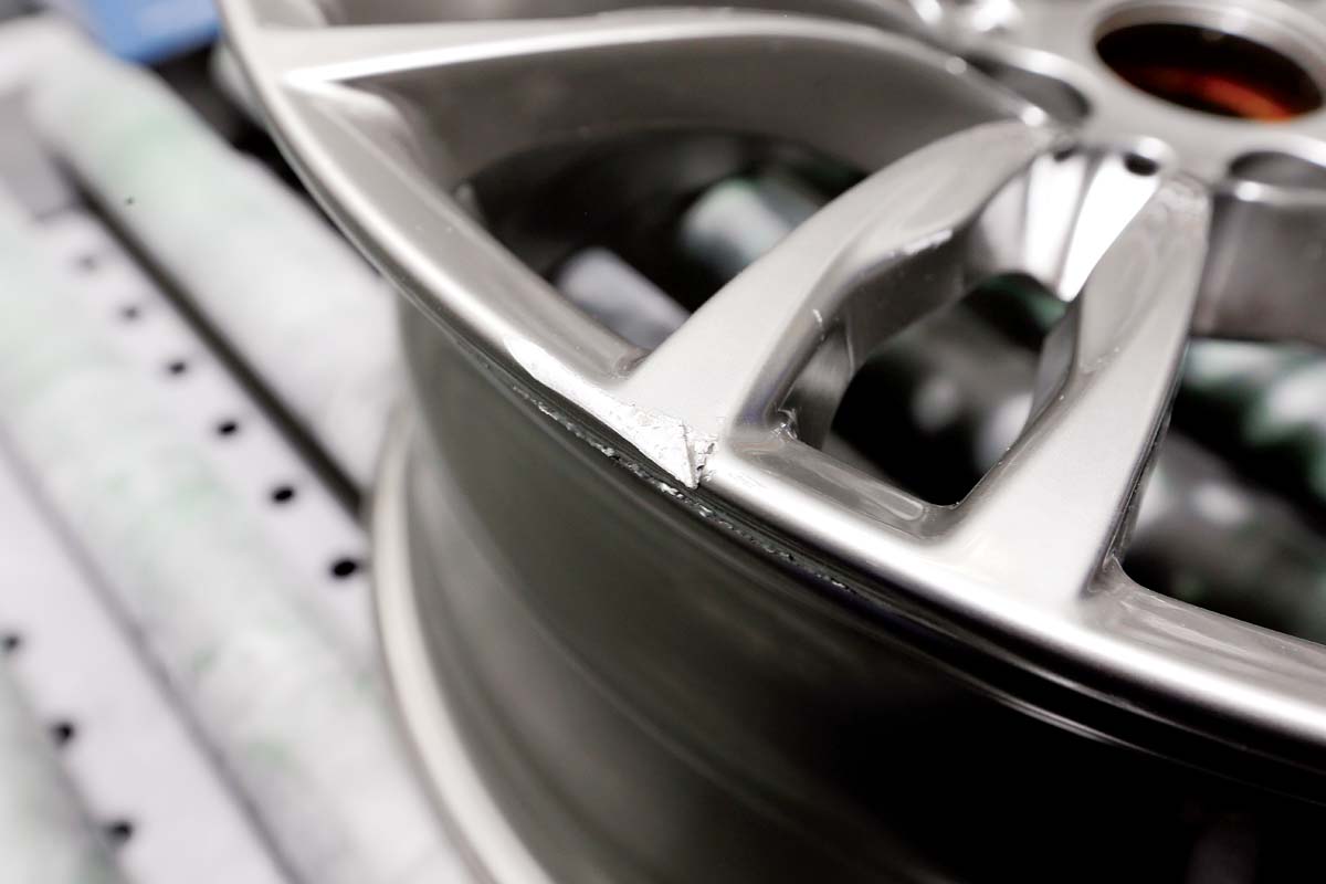 一般來說輪圈最容易在停車時受傷,像是近年流行的海拉風尖胎配置,若一不注意圈唇便會碰到人行道,導致輪圈擦傷甚至產生缺角,但高級車款或進口改裝輪圈如果要換新往往價格不斐,不過若是可進行修復處理,不僅能回復樣貌同時也能減少荷包支出(18吋基本修復烤漆約NT$2,500)。