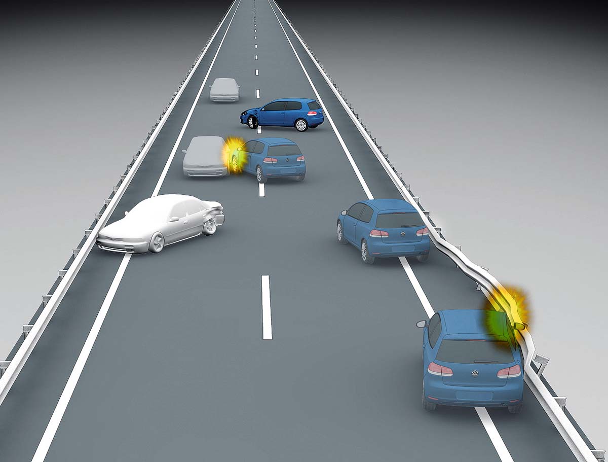 | 首次碰撞後的餘速仍會帶著汽車繼續追撞,這時作動過的氣囊可能沒法完善地保護乘客,二次碰撞預 煞系統可降低再次碰撞的風險。 |