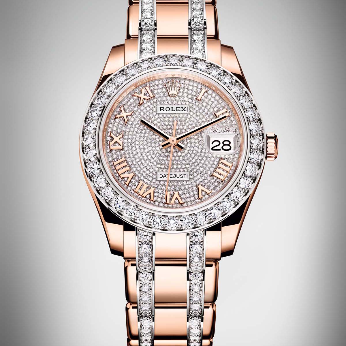 勞力士(Rolex)紅蟳(當年的蠔式錶殼以黃金或玫瑰金製作的版本,台灣都會稱紅蟳)多年前在台灣市場炒得火熱,每個暴發戶老闆出入開賓士,手上帶金勞已經成了既定印象,但最近全金腕錶熱潮回燒,勞力士怎能不提一下?今年新作Pearlmaster 39除了全玫瑰金材質外,面盤上鑲滿圓鑽,連錶殼與錶帶上都有大氣的鑽石鑲嵌,整只腕錶只能以霸氣來形容。機芯採用全新研發的3235型機芯,相當珍貴。