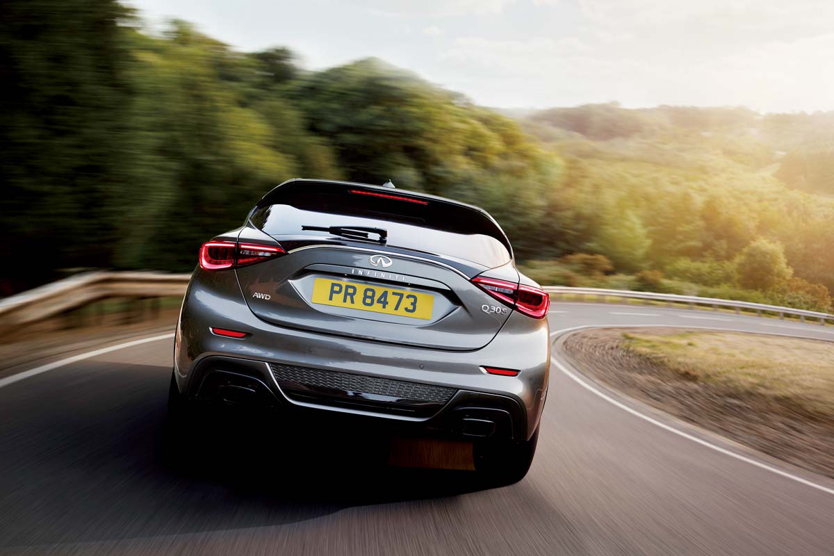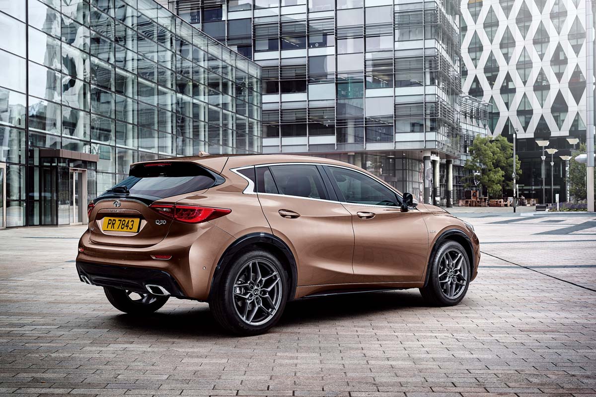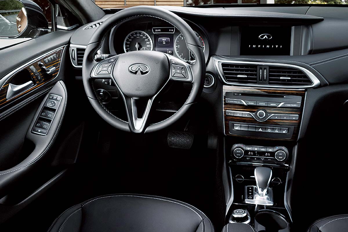 車高達1495mm的Q30,相較對手足足多了5~6cm,肌肉感十足的輪拱設計,透過高著座點設計所換來的優異視野,不禁都讓人想起小型休旅車Nissan Juke,跨界風格相當濃厚。傾瀉而下的車頂、誇張的車身折線,則營造出鮮明的跑格身形。車室中,可看到Infiniti InTouch系統7吋螢幕、Nappa皮革座椅、甚至高階車型上的Bose音響,都呈現品牌一貫的豪華感。安全方面,由7具氣囊、AFS轉向頭燈、VDC動態穩定、AVM環景顯影、TPMS胎壓偵測等配置,構築出完善防護。動力上,將提供1.6升與2.0升兩種渦輪增壓汽油引擎,分別擁有156hp與211hp最大馬力,並統一搭載7速自手排變速箱及前驅系統。一句話形容的話,Q30就像CUV與Coupe混血生下的非典型掀背車。