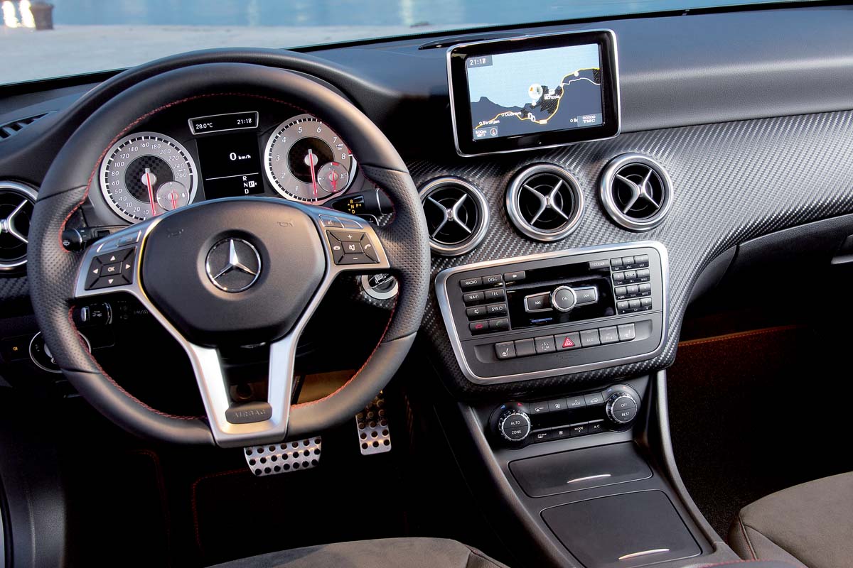 自去年小改款推出以來,A-Class便持續霸佔豪華掀背級距的冠軍寶座,不難想像國人對M.Benz的喜愛。外觀上帶著不怒自威的神情,若是選擇A250 Sport或A180 AMG Line,車頭鑽石型水箱護罩更華麗得讓人忍不住多看兩眼;全車身負多道鈑件折線,低調動感的氛圍與品牌形象頗為合拍。進入車室,A-Class中控檯上三環冷氣出風口風格相當特殊,每每讓人聯想到飛機座艙。儘管行李廂不算寬裕,但後座透過前方椅背削薄與傾角設計,乘坐空間仍有一定水準,可惜中央底板隆起仍高,多少影響足部空間。一句話形容的話,A-Class就像是通往三芒的捷徑,但別忘記,那塊招牌也是購車成本的一環。