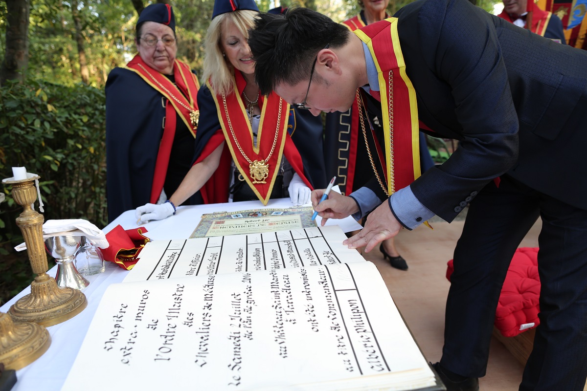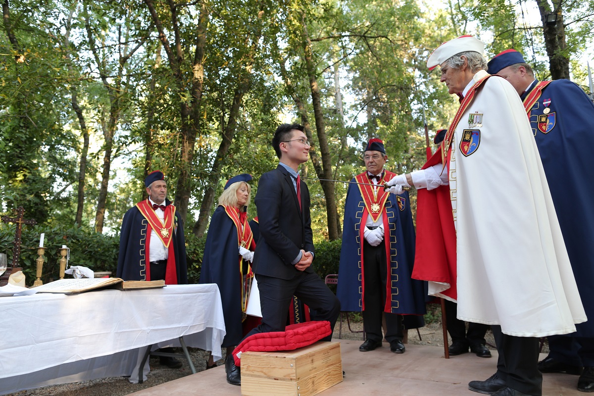 「普羅旺斯騎士團」授勳儀式由輩分崇高的主席Jean-Pierre BOYER(右一著白袍持劍者)親自主持。