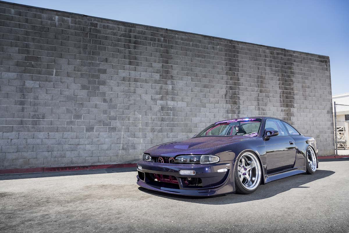 一般讀者提到了Nissan 240SX,腦海中最先浮現的畫面應該只有白煙翻長的華麗甩尾,雖然真的帥到爆炸,但是對於女車主Beatrice來說在一個姻緣機會之下與熱愛改裝車的丈夫結緣,因此才開始深深愛上改裝這股迷人的魅力。也由於受到自己老公的S13改裝風格影響,希望愛車也能夠走自己的改裝風格,只不過有不少人無法認同她的藍圖構想,但她還是只能先暫時跟大馬力暴力甩尾式樣說Bye Bye,因此引擎方面並沒有太過於強調動力升級,僅針對細部進排氣與客製化引擎室噴漆進行處裡,雖然沒有誇張的渦輪機鎮守在引擎室相伴,但是超搶眼的粉色系彩繪仍是備受矚目,每每打開引擎蓋時總是能夠吸引眾人目光。既然動力方面並非改裝主軸,那就肯定要在其他地方下真功夫才能贏得許多美國當地的改裝大獎,而從趴低低的外觀上或許就能猜測其改裝風格,在美國的海拉風相當盛行,透過可調式將車身高度降到一拜的藏輪,同時輪框幾乎切齊輪拱,雖然沒有氣壓懸吊只能趴低低的在路上行駛,但是想要海拉所要付出的帥氣代價就一定不會少。