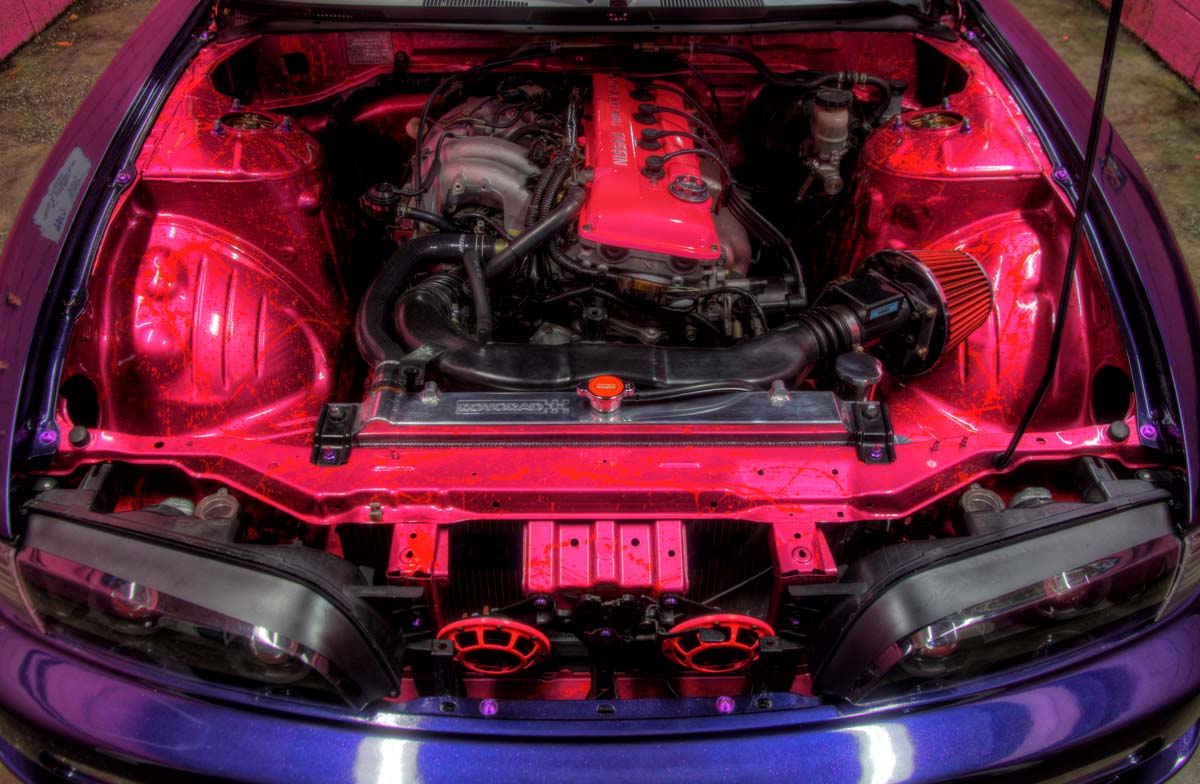 | 雖然動力並非主要改裝項目,但是透過客製化粉色系噴漆來裝扮引擎室,還是相當有看頭。 |