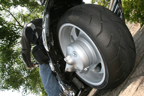 | 240的寬胎霸氣十足,哈雷改裝成這般規格可得花上二、三十萬,當然售價也不便宜,一條胎萬把塊,可買汽車四條胎。 |