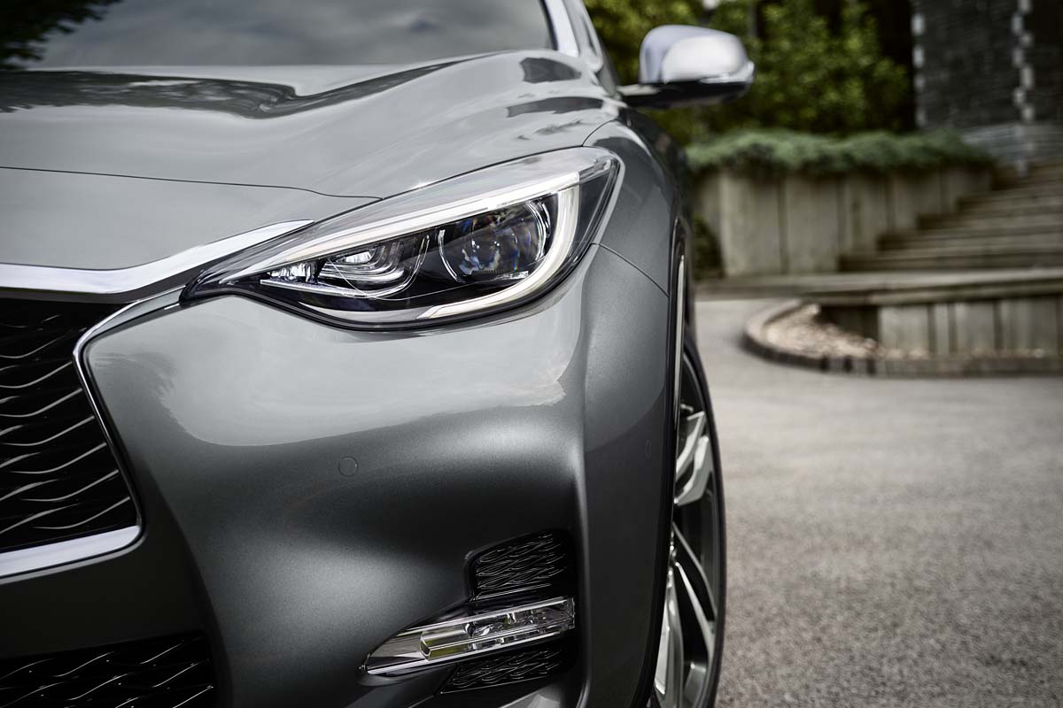 於2016台北車展正式亮相的INFINITI Q30,以結合Coupe雙門轎跑車的流線造型搭配小型休旅車的空間氛圍,大膽挑戰傳統級距的慣性思維,打造出超越一般豪華掀背車對手,以跳脫平凡的「非典型豪華掀背」之姿,立於豪華入門級距的制高點。不於既定範圍內思考的INFINITI Q30,是掀背車、是休旅車,同時也是時尚跨界跑旅。INFINITI Q30以挑戰傳統的大膽思維,雕塑顛覆感官的線條與車身比例,開創豪華掀背車截然不同的格局,成就出自我風格濃烈的豪華掀背新思維。
