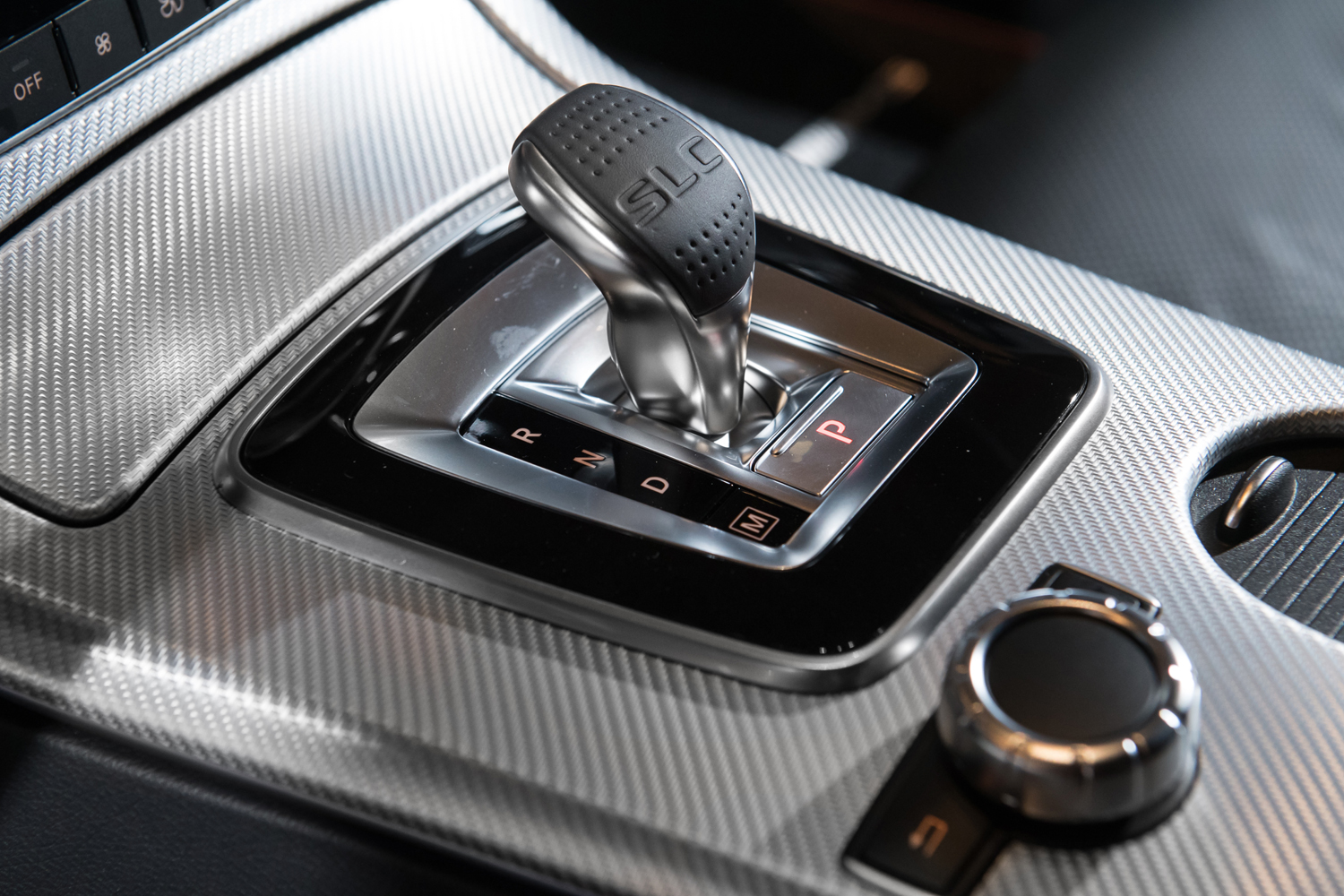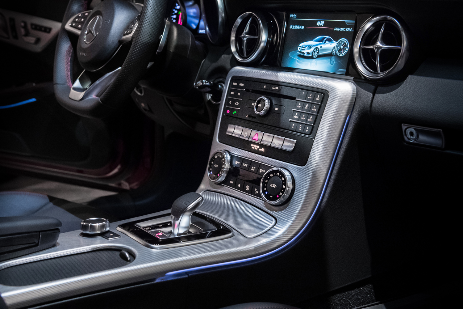| The new SLC以更短捷立體的排檔桿,搭配9G-TRONIC九速手自排變速箱,營造出順暢的加速曲線 |