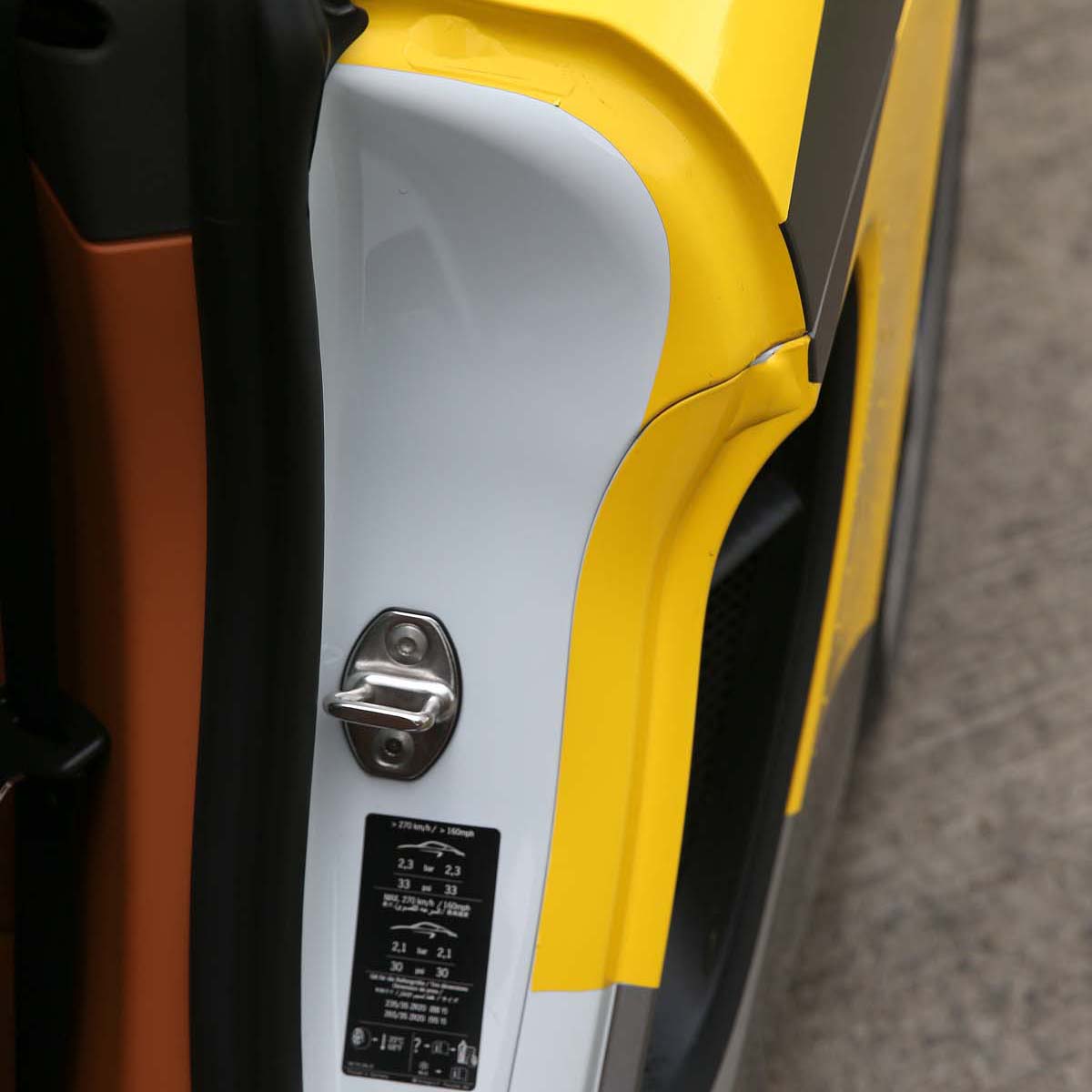 | 從許多車門內與鈑金接縫處來觀察,這部Cayman的貼膜技術確實了得,許多細節都處理的相當漂亮。 |