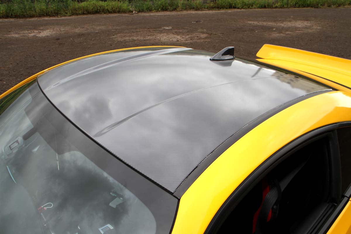| 車頂部分也貼上立體的碳纖維紋路貼膜。 |