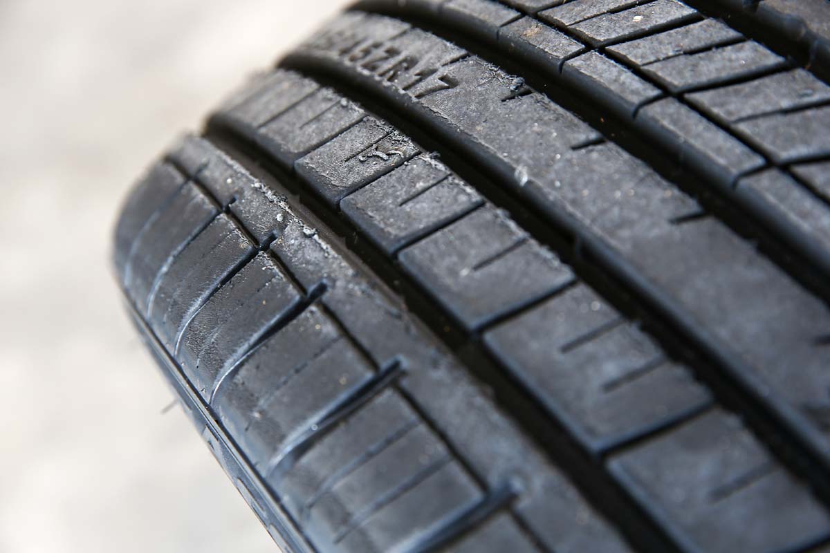 | TW280的設定以一般街胎來說摩擦係數算是相當巔峰,輪胎正面的熔解程度並不誇張,胎塊也相當完整,胎面強度整露無遺。 |