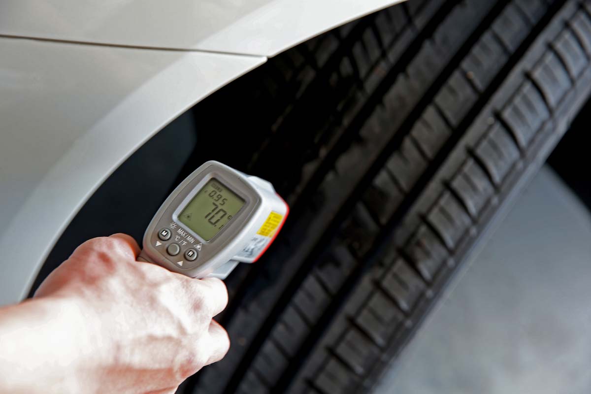 實際在大鵬灣賽道上午33.4度&賽道溫度50.1度,胎壓部分參考原廠Scirocco低負載建議將胎壓設定在33psi,車手下場測試30分鐘左右表示,這條Aeolus AU01這條胎的各項表現都相當中等,輪胎部分由於是街胎設定,因此在極限操駕後,這條胎對於胎溫的敏感度相當高,一旦輪胎過了抓地力顛峰後,中末段的抓地力表現則是因為賽道內不斷摩擦導致熱衰竭較為明顯,以前輪胎溫來說就將近提升了快20度,大鵬灣內Aeolus AU01在Scirocco 1.4TSI上則是可維持3圈約16秒台左右的走行,這個部分基本上在一般路上不會遇到如此的激烈手段。