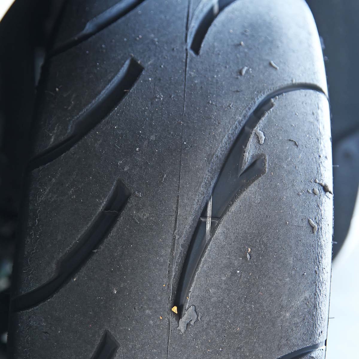 | 胎面磨損程度完全被壓制在正確的胎塊上,胎肩的磨損也剛好只是掃到磨耗指示上,推測AR-1如果在PIC全力走行,約有3-5圈機會可挑戰最速成績。 |