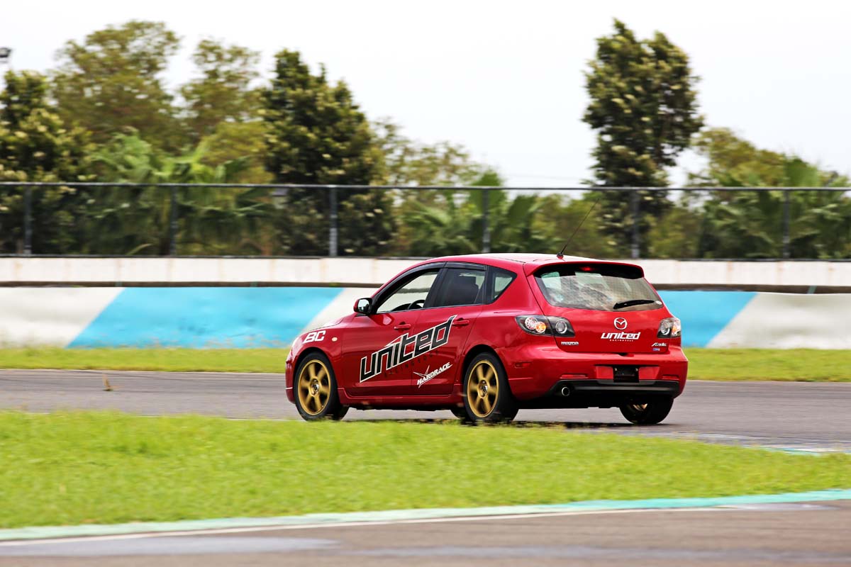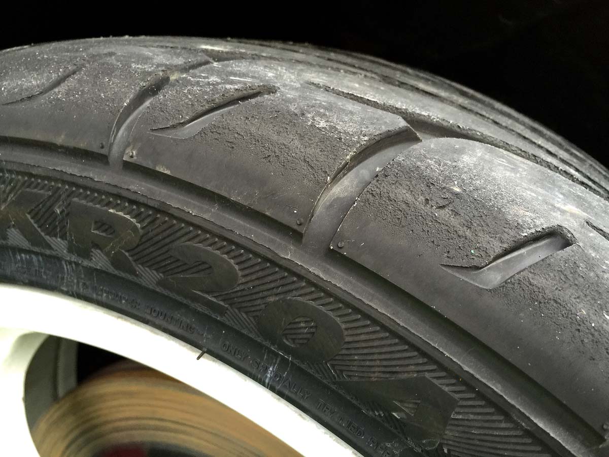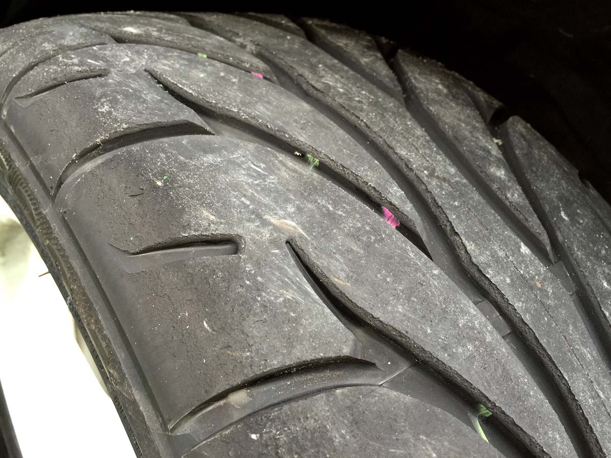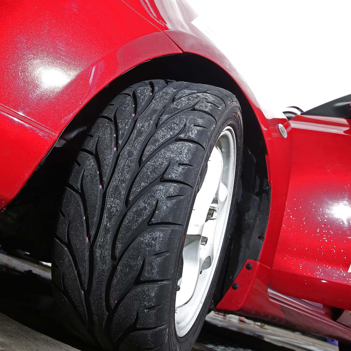 方向盤轉動同時,胎邊剛性強化設計,提升車輛過彎之車身穩定性與靈活性,照片中其實就可看到胎肩的磨損控制非常好,所有的磨耗完全就是被控制在胎面上,這樣對於一般沒有特別設定定位的街車來說非常適合,不需要透過特殊的設定就可維持輪胎最大的抓力表現。