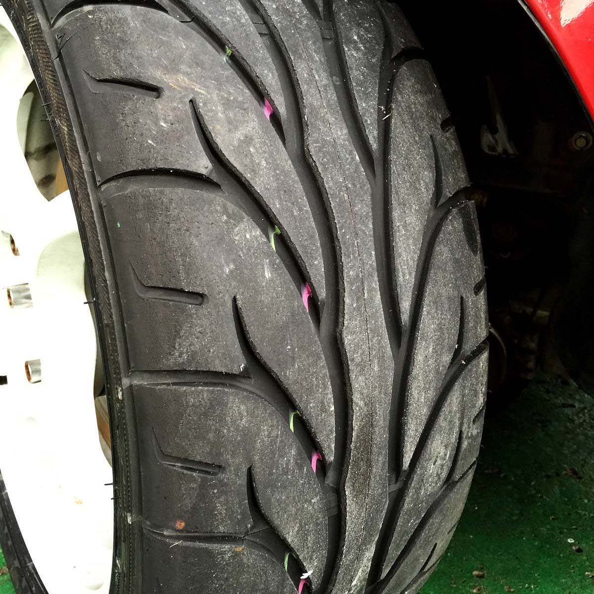 胎塊的磨損表現並沒有其他胎型來的誇張,因此實際操駕上在大減速後的入彎,車輛的表現指向性似乎沒有預料中的精準,冷胎時候的抓地力表現也較偏向競技取向,需要更多圈數來達到適當工作溫度,也推測如果今天將胎壓多升高2-3psi或許可有更佳的表現,不過在這種半乾不溼狀態下,2分14秒68也是可以接受的表現。