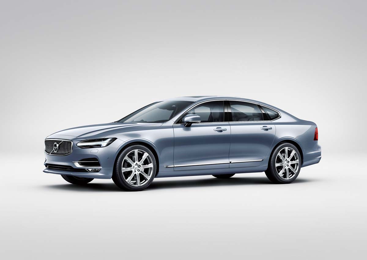 S90將會取代目前現行的品牌旗艦S80車型(V90則為全新車款),外觀上取材了許多源自XC90的家族化風貌,車頭使用與前保桿、下進氣壩一體成型的倒梯型水箱護罩,並採用獨特高雅的直柵式造型,搭配炯炯有神的LED「索爾之槌」日行燈,豪華中不失霸氣。車側部分則使用了陽剛味十足的車身腰線,創造出俐落的身段,同時在車門底部加裝鍍鉻飾條提昇豪華感,可以說是相當復古的手法,但效果卻超出預期。車尾部分是S90畫龍點睛之作,配置了全新設計的雙C字型LED尾燈,擁有不容錯認的極高辨識度。