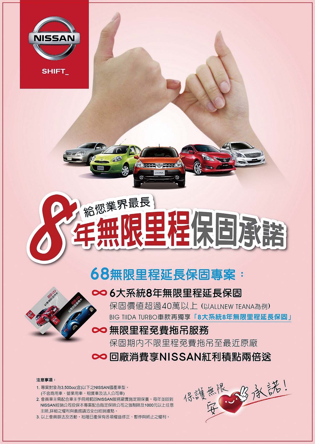 | Nisaan推出六大系統8年不限里程延長保固方案。 |