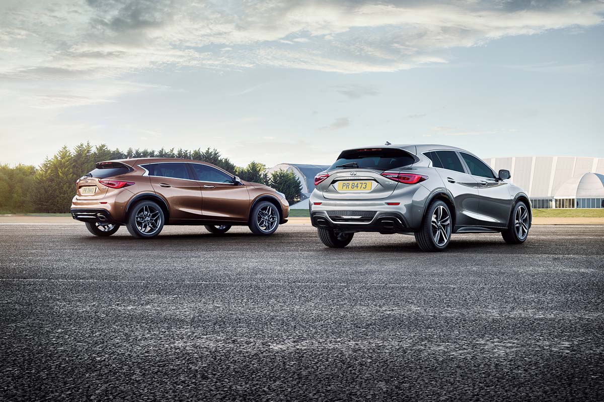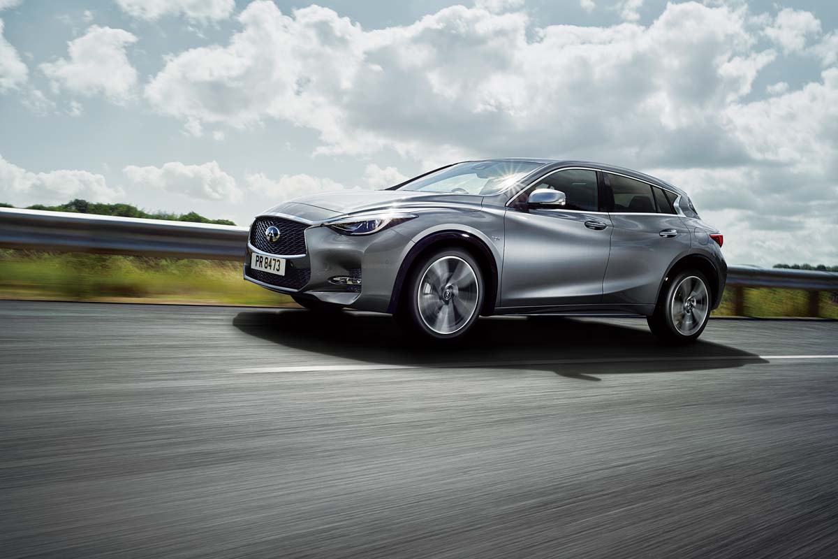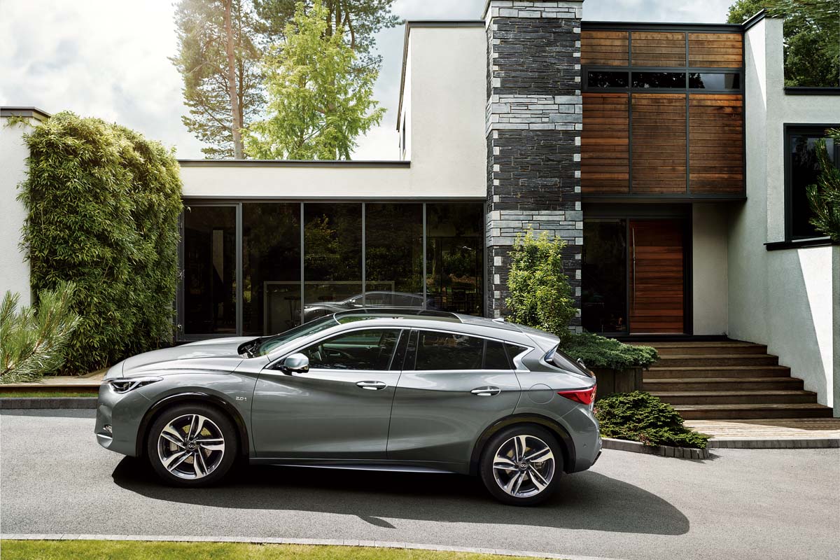 Q30所擁有的豐富線條設計皆取自於Q30 概念車,在大量保留概念車設計元素下,其相當流線動感的身形曲線,肌肉感十足的粗壯輪拱線條不僅帶來視覺張力,更散發出強烈的運動氣息,而與A-Class、1 Series、A3、V40等同級對手相比,Q30所高出的5~6cm車身高度,更隱約散發出跨界氛圍,搭配家族最新水箱護罩車頭設計,整體呈現極具視覺豐富效果的運動奔放感。如此搶眼的造型設計,讓Q30不僅在對手中有著截然不同的視覺感受,也因此成功地在豪華掀背車級距中打響名號。