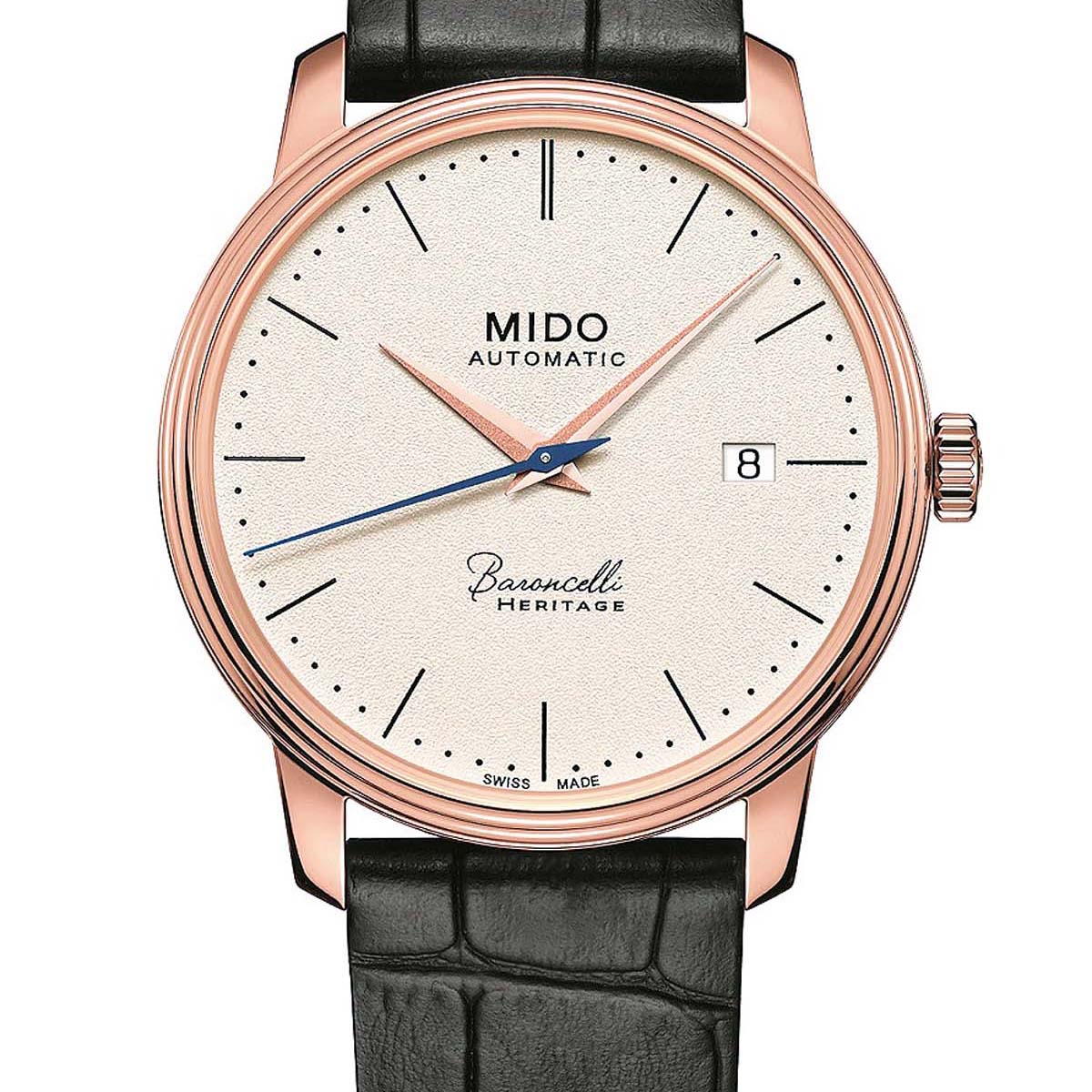 美度(Mido)的Baroncelli Heritage永恆系列腕錶,可以說是最為復古也最典雅的代表之一。它的原始設計可上溯至四十年前,當代的設計風格到了今天,仍舊十分典雅,看來經過時間的洗禮,愈能顯現出經典的美好。為了紀念時代洗禮過後的美,腕錶在六點鐘位置也加上了Baroncelli Heritage草寫字體,並將錶身做得極薄(男仕系列厚6.95mm,女仕系列則為6.85mm,當年可做不到這種程度);加上極富古典味的錶殼環形刻紋,也顯露出它的經典與不凡。