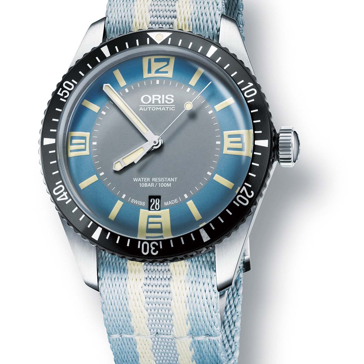 新款的潛水錶仍舊延續去年的潛水錶復刻作,但重新為它增添了新色──多維爾藍;這種藍色在1960年代極度盛行於法國北部,在那個年代,淺藍色代表自由、舒適與奢華,而這種色調也讓這只復古潛水錶進行了形而上式的穿梭時空。