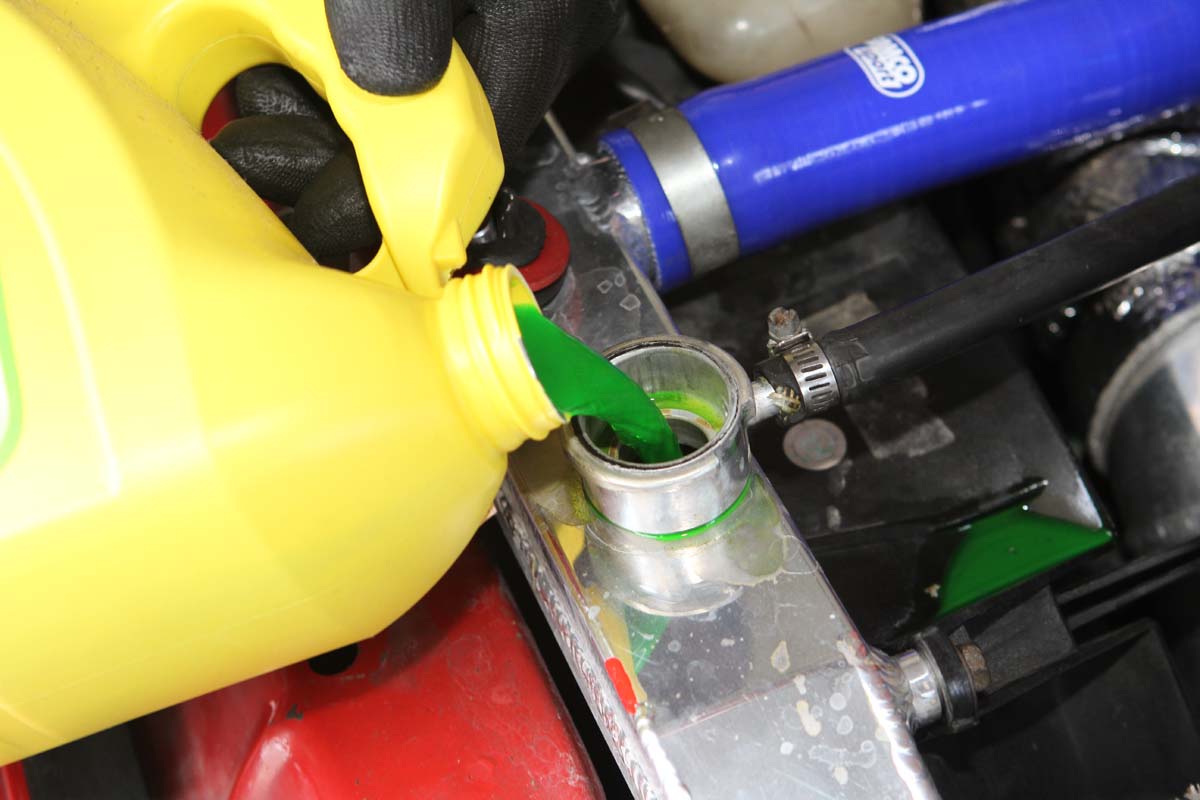 提到水箱精的配方上,它除了含有提高沸點的成分以外,還具備防鏽、抗凍、潤滑水泵浦、抑制氣泡、改變升降溫性質等添加劑,因此水箱精添加可說非常重要,需好好加以選擇,且需注意水箱為銅質或鋁製品的標示應對。此外,關於水箱蓋的部分,原廠製的水箱蓋壓力多為0.9~1.1kg/cm2,街道強化用的在1.3-1.5kg/cm2之間,建議讀者最好是選擇1.3kg/cm2左右的型式,以免因壓力過大發生水箱龜裂、爆水管的情形(特別是上水櫃/上水管處)。如果使用的水箱蓋壓力高達1.5kg/cm2以上,應該要將上、下水管換成包覆金屬網眼或三層含矽橡皮的式樣,來避免突然發生爆裂的問題,同時這類製品不會膨脹的性質,對水溫恆定性亦有一定的幫助。