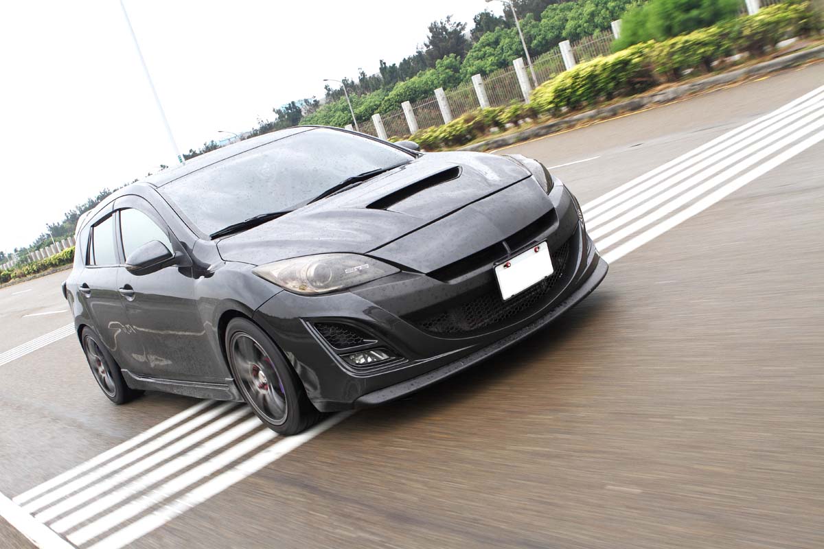 說起目前國內最夯的熱門國產改裝車,除了Lancer Fortis/iO與Civic 8/9外,再來就是二代Mazda 3,尤其這部車渦輪化的時間比較早,且引擎系統都與一代Mazda3相似度極高,因此目前國內渦輪化的升級技術可說是相當成熟,相較三菱Fortis來說問題更少,成為許多年輕熱血車主購車時的首選,而這部Mazda 3 2.0L的車主,也是看中這點才選擇這部車當作代步車。雖然二代Mazda 3的外型已頗具運動感,特別是五門車款更有著鋼砲般的外型,不過車主為了讓愛車更加與眾不同,同時擁有更強悍的加速表現,特別透過加裝渦輪增壓系統與空力套件的方式來進行全面提昇。