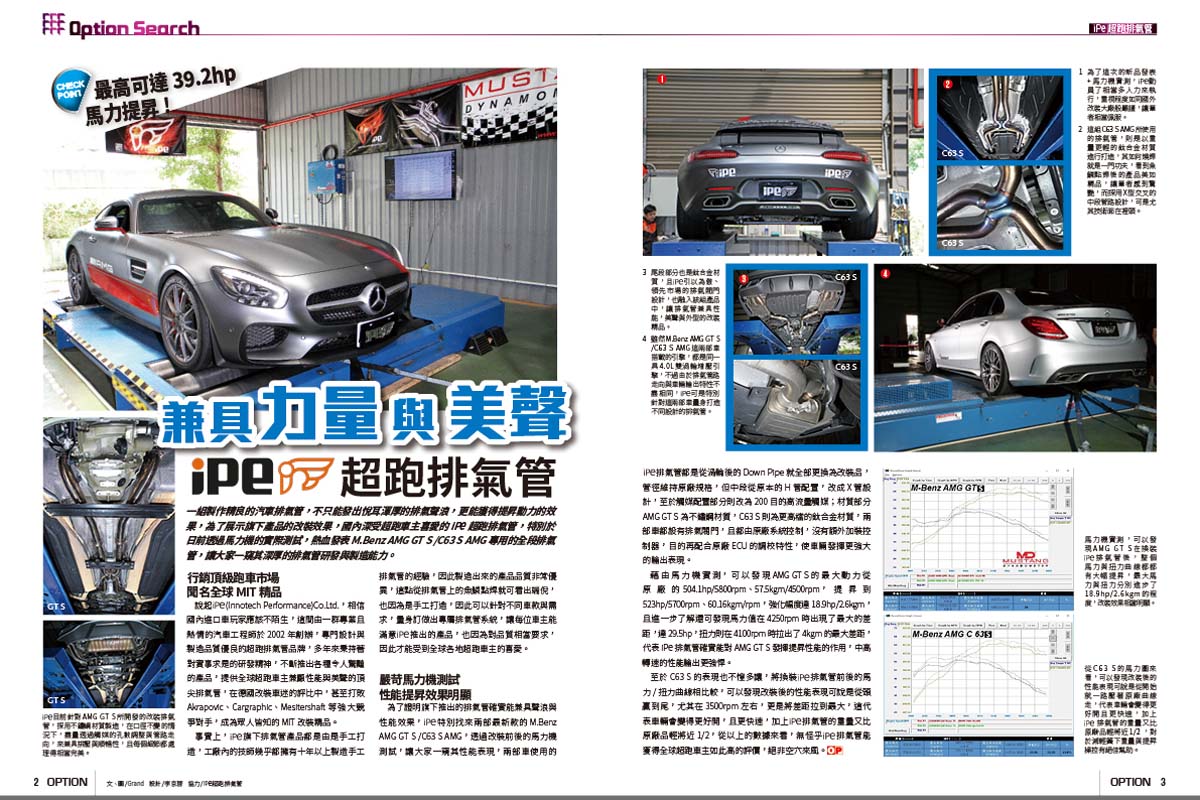 一組製作精良的汽車排氣管,不只能發出悅耳渾厚的排氣聲浪,更能獲得提昇動力的效果,為了展示旗下產品的改裝效果,國內深受超跑車主喜愛的iPE超跑排氣管,特別於日前透過馬力機的實際測試,熱血發表M.Benz AMG GT S /C63 S AMG專用的全段排氣管,讓大家一窺其深厚的排氣管研發與製造能力。