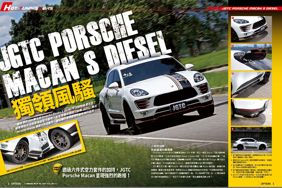 一輛車價近300萬元的Porsche Macan S Diesel可以如何與眾不同?最簡單的方式就是換組空力套件,主攻車體改裝的「台灣JGTC」推出Porsche Macan專用六件式套件,讓這輛小老虎成為名副其實的猛虎。