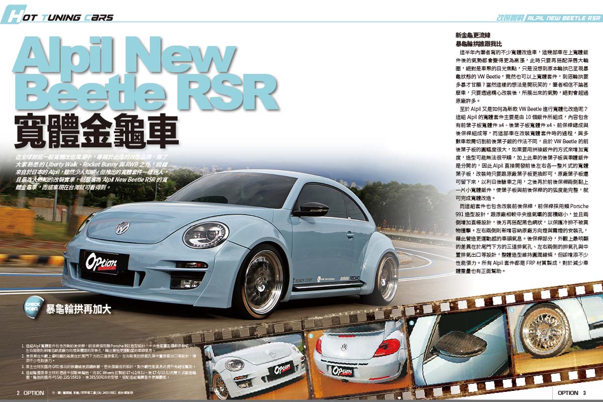 在全球掀起一股寬體改造風潮中,專精於此道的改造品牌,除了大家熟悉的Liberty Walk、Rocket Bunny與RWB之外,同樣來自於日本的Alpil,雖然少人知曉,但推出的寬體套件一樣迷人,且最為人熟知的改裝實車,就是名為Alpil New beetle RSR的寬體金龜車,而這車現在台灣就可看得到。