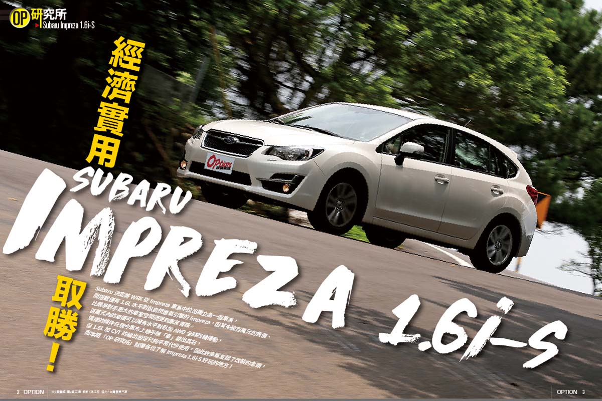 Subaru決定將WRX從Impreza車系中拉出獨立為一個車系,而搭載僅有1.6L水平對臥自然進氣引擎的Impreza,因其未破百萬元的售價、比競爭對手更大的車室空間而受到車友青睞。百萬元內的車價可以擁有水平對臥加AWD全時四輪傳動,這樣的條件在現今車市上幾乎無「車」能出其右,但1.6L加CVT的輸出設定只夠平常代步使用,因此許多鯊友起了改裝的念頭,而本期「OP研究所」就帶各位了解Impreza 1.6i-S好玩的地方!