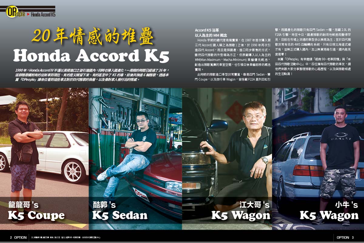 1990年,Honda Accord IV不僅以美規進口之姿引進國內,同時也導入國產化,一晃眼的時間已經過了26年,這群雅歌鐵粉有的從新車到現在、有的是父親留下來、有的甚至中了K5的毒,前後共換過6輛雅歌,透過本篇「OPeople」讓各位看到這些車主對於四代雅歌的執著,以及像對家人般付出的情感。