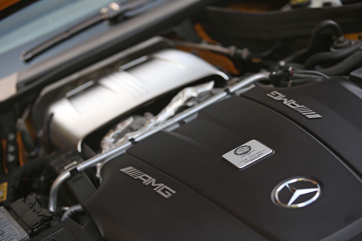 M178引擎採用「hot inside V」配置,利用這個方式來大幅縮小引擎本體的體積,因此打開引擎蓋就能看見兩顆渦輪放置在引擎上端,那熱血氛圍真的讓人深深倒抽一口氣,另外還有一個完全來自於賽車的元素,那就是AMG GT S搭載了反應更直接的乾式油底殼,在沒有油底殼阻礙下,額外得到大幅降低引擎重心的優勢,另外汽缸壁上採用了「NANOSLIDE technology」奈米鍍層的專利技術,與更偏向賽車的短裙活塞搭配下,讓引擎的運轉效率更加精緻,而為了要避免上置渦輪機帶來的高溫,上半座採用具有抗高溫的鋯合金特殊金屬製成。