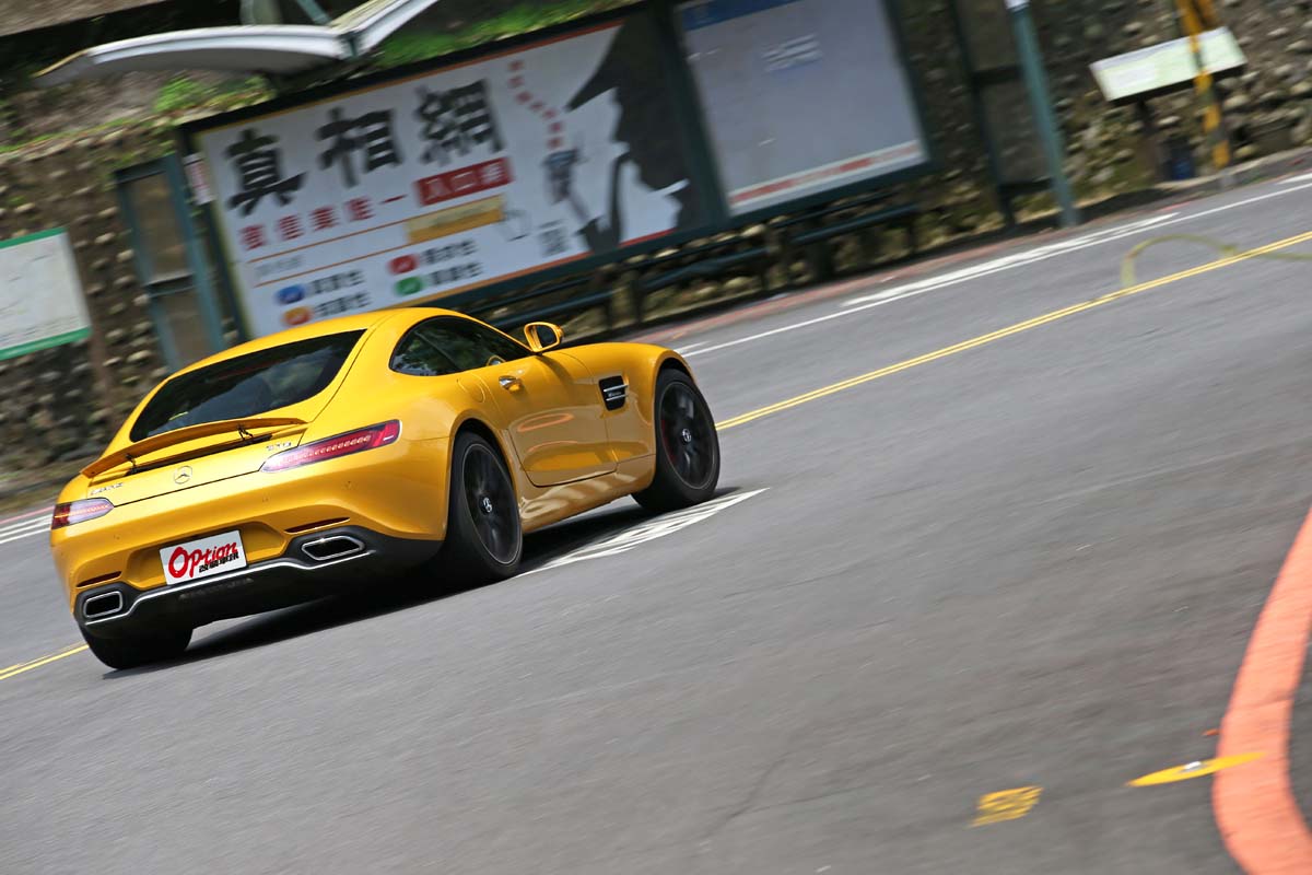 但是Mercedes AMG GT S「沒有」這個疑慮,賓士車特有的低速大扭力多半是導致底盤無法跟上的主因,而Mercedes AMG GT S這電子阻尼懸吊真的很強,彎道中車體幾乎沒有側傾,遇到路面不平整時卻又能確實吸收震動,駕駛時候就像是在平整的賽道內般的錯覺,方向盤切下去第一下瞬間,雖然沒有廠車那般犀利,偏中性的特色我覺得很適合更多人使用,當維持方向盤幅度持續補油,那長長的車頭彷彿變短了,流暢度絕對是我開過的賓士車型中最頂尖的表現,有點類似GTR R35可以大腳油門過彎的感覺。