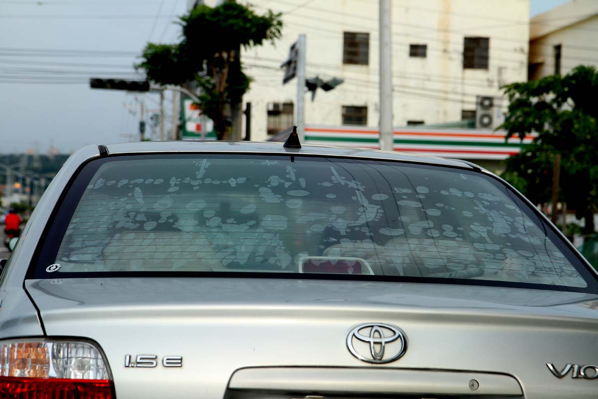 再來是車內防水的實行,則是在中控檯上鋪滿吸水布,或在門板上黏層塑膠外套等方式來達成,甚至還要製作布條塞進玻璃與中控檯的縫隙裡,避免水滴跑進內部,影響電子零件運作。至於增加黏著力部分,因前檔玻璃是有弧度的,但隔熱紙卻採平面生產,若能先用吹風機烘烤隔熱紙,就可以讓隔熱紙表面產生收縮塑型,如此就能增加隔熱紙黏貼在玻璃上的附著力,減少邊緣剝落問題發生。