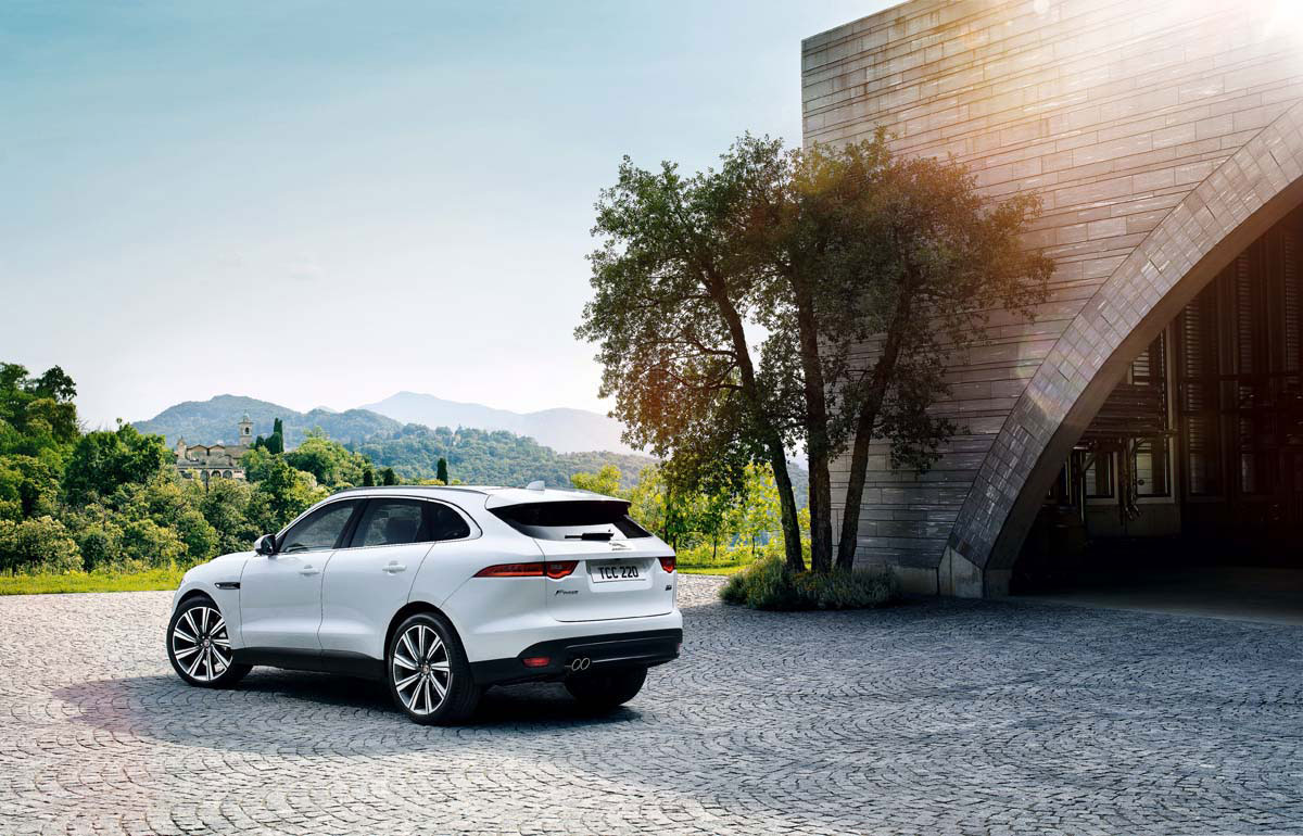 F-Pace在設計時,外觀靈感來自於F-Type,因此車頭方面可以看見極具視覺張力的水箱護罩與進氣壩,而此造型象徵也早已運用在Jaguar旗下車型,另外,車側的葉子鈑散熱孔與半圓弧形LED尾燈,皆可看出與F-Type之間的連結。F-Pace車體80%採用鋁合金打造,其車體重量僅298公斤,除具輕量化效果,對於操控也有正面影響。F-Pace擁有4731mm的車長,在長車頭短車尾的車身設計下,勾勒出強烈跑車化身形,19吋輪圈更進一步彰顯出運動休旅車應有的氣勢。而R-Sport 35t在配置R-Sport套件後,運動氣息則更為濃厚,與X5、GLE、Macan等對手相比,也有著相當明確的市場定位。